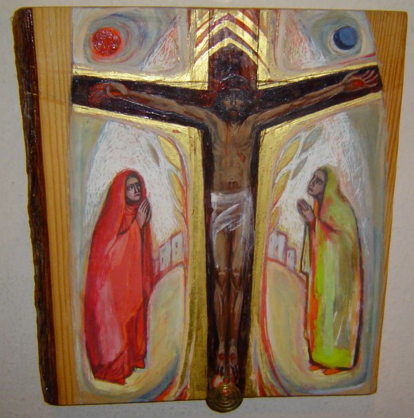 The witnesses above are sun and moon, and below are Mary and the disciple John.