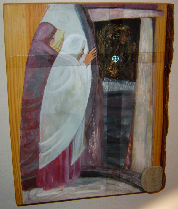 The women say their ‘Farewell’ – or so they think – and the great stone is rolled across to seal the tomb.